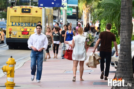 Лера Кудрявцева, Жанна Фриске и Дмитрий Шепелев устроили пешую прогулку по МайамиВ перерывах между шопингом Жанна, Дима и Лера устраивали себе отдых в уличных кафешках Майами, лакомясь мороженым и наслаждаясь прохладительными напитками.Конечно же, в большинстве случаев столь частые передышки устраивались для Жанны, которой уже не по силам длительные походы за покупками.