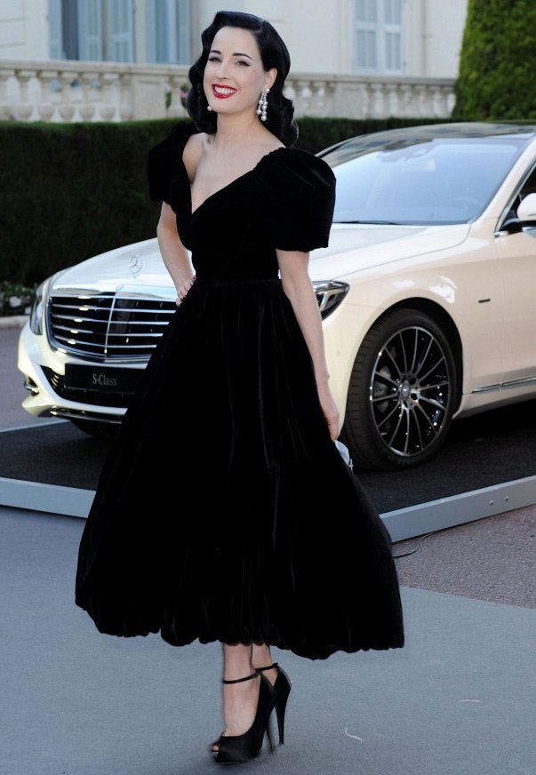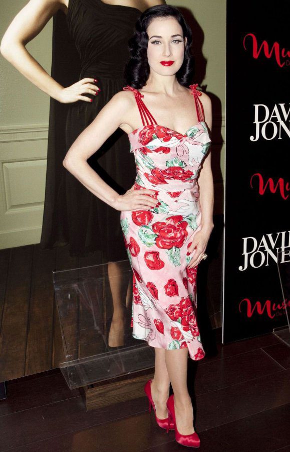Любимый цвет королевы бурлеска – чёрный. Но не стоит думать, что она избегает ярких расцветок – летом она носит лёгкие романтичные платья с выразительными принтами, вышивками и аппликациями.