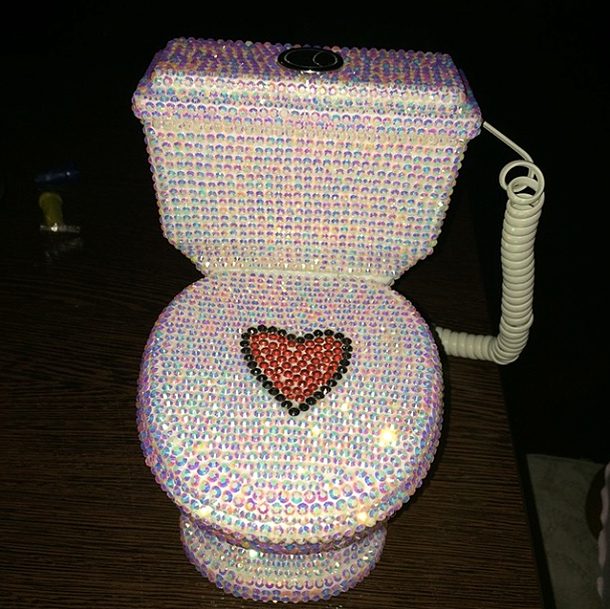 Блестящий и гламурный «белый друг», привезенный из Алании дочке балерины Арише, произвел в Интернете и СМИ настоящий фурор. Фанаты звезды пришли в восторг от оригинального домашнего телефонного аппарата в виде красивого и гламурного унитаза со стразами.