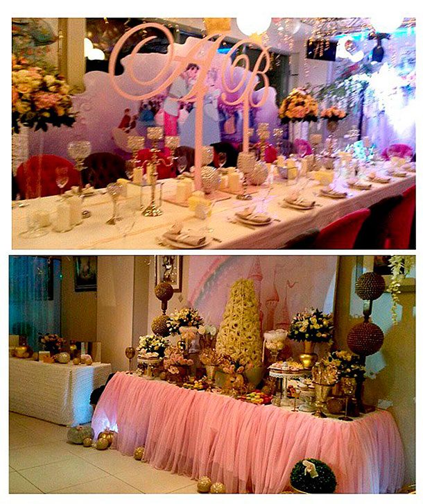 Весь пол в помещении, стилизованный под газон, на радость детишкам был усыпан разноцветными шариками. Украшенные нежно-розовым шифоном и белоснежными скатертями столы ломились от всевозможных угощений. Там, где сидела Алла-Виктория, были установлены большие буквы ее гордого имени А и В. Они же красовались на выпечке, которую, судя по виду, вполне можно назвать шедевром кулинарного и дизайнерского искусства.