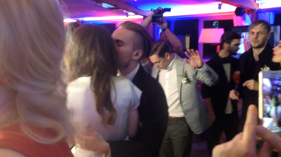 Парочка обменялась кольцами в Кутузовском ЗАГСе Москвы. Поздравить молодоженов приехали только самые близкие друзья влюбленных.