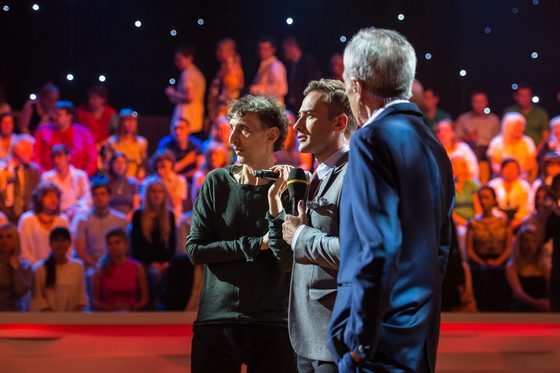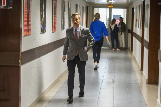 Как сообщают отечественные СМИ, в свой первый рабочий день в этом телесезоне телеведущийбыл одет в стильный серый пиджак и узкие брюки. Ансамбль завершал контрастный галстук. Его соведущий выбрал костюм актуального темно-синего цвета.