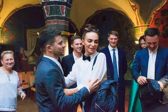 В одном из молодожёнов легко узнаваема звезда русского телевизионного шоу Comedy Woman Евгений Бороденко.