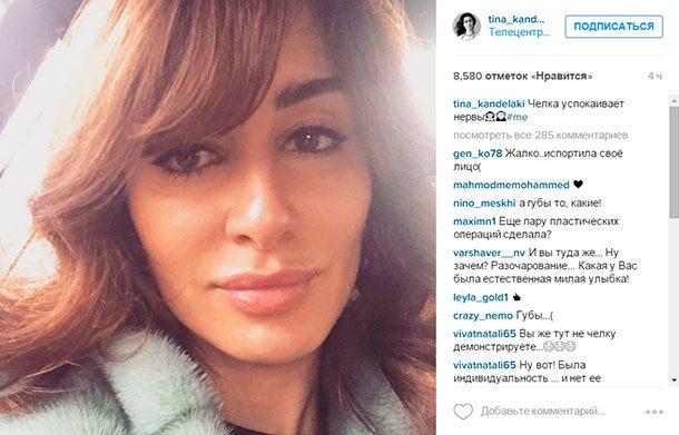 Многие поклонники подумали, что Канделаки увеличила их и поспешили сообщить, что такие изменения во внешности Тине не к лицу. «Я даже не узнала сначала. Дорогая Тина, вы индивидуальна, не становитесь как все эти гламурные девушки на лицо одинаковы. Не делайте больше губы. Ужасно», «Накачала губы», «Тина, Вы красивая от природы женщина. Губы-пельмени Вам не к лицу», «то-то Тина все меньше и меньше становится похожей на себя… Меняется не в лучшую сторону. В той Тине была изюминка, а эта… Таких тысячи», «А что с губами? Увеличели? За чем? У вас красивые губы были», Вы же тут не челку демонстрируете...", «Что с Вами, Тина?», «Тина, естественная красотам была вам к лицу, а сделанные губы вам очень не идут! Теперь губы похожу на пельмени и всем понятно, что Вы их накачали. Выглядит ужасно, если честно! (орфография и пунктуация авторов сохранены. – Прим., ред.)», написали разочарованные пользователи сети.