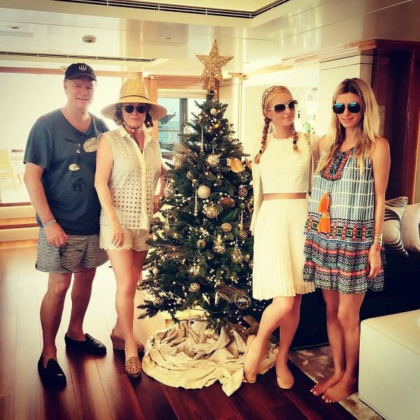Скандальная Пэрис Хилтон провела Рождество с родными, но обратите внимание на их явно не зимние наряды — на фоне сверкающей елки это очень бросается в глаза.