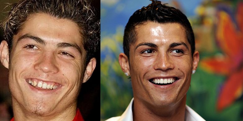 У многих хубы те же, просто отбеленные. Интересно, чтоу Роналду от природы второй правый зуб отсутствует. И вообще, он со старыми зубами просто жуткий