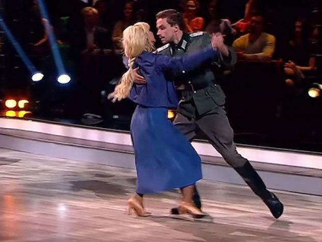 Телеканал «Россия1» посвятил выпуск «Танцев со звездами» 55-й годовщине великого подвига — полета Юрия Гагарина в космос. Передачу эту предваряли новости, в которых говорилось о подготовке к Дню Победы, святому празднику для нашего народа. И вдруг … Человек в фашистской форме с железным крестом на груди гоняется за блондинкой (типа, жертвой), а затем, так сказать, на языке танца начинает крутить с ней шуры-муры. Да вы там совсем сдурели, что ли, на вашем федеральном канале?!