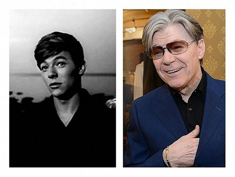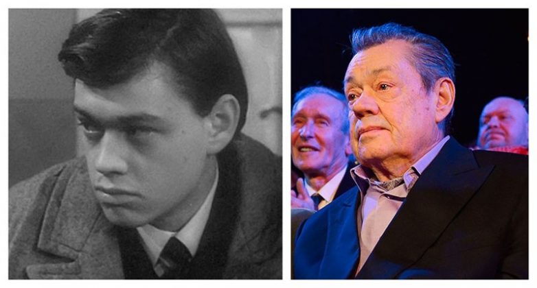 Николай Караченцов в фильме "… И снова май!", 1968 год и на юбилейном вечере в честь своего 70-летия в «Ленкоме», 2014 год
