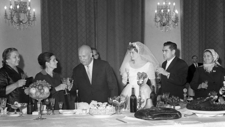 2. Валентина Терешкова (космонавт) и Андриян Николаев в 1963 году. На свадьбе присутствовал Никита Хрущев