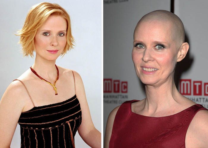 Рыжеволосая звезда сериала «Секс в большом городе» сбрила свои волосы ради роли в театре. В постановке «Wit» Синтия сыграла профессора литературы, у которой диагностировали рак. Для этой роли актрисе также пришлось сильно похудеть.