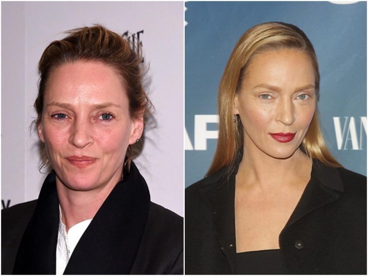 После того как Ума Турман появилась на публике с «новым лицом», очевидцы стали отмечать, что черты ее лица потеряли живость, улыбка стала неестественной, глаза заметно сузились, к чему привлекли внимание отсутствие туши и акцент на губы в макияже. Приятели звезды говорят, что похода к пластическому хирургу не было; визажист, работающий с актрисой, заявляет, что она стала выглядеть по‑другому из-за экспериментов с макияжем. По их словам, Ума лишь перестала пользоваться косметикой в большом количестве. Сама же актриса на заявления о ее «новом лице» никак не отреагировала.Рене Зеллвегер