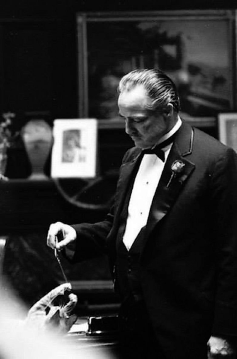 Марлон Брандо играет с котом на съёмках фильма «Крестный отец», 1971 год.