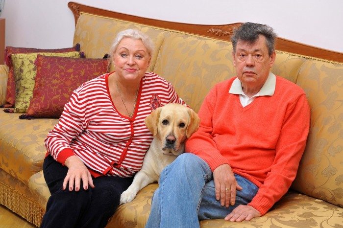 Людмила Поргина и Николай Караченцов с домашним питомцем.