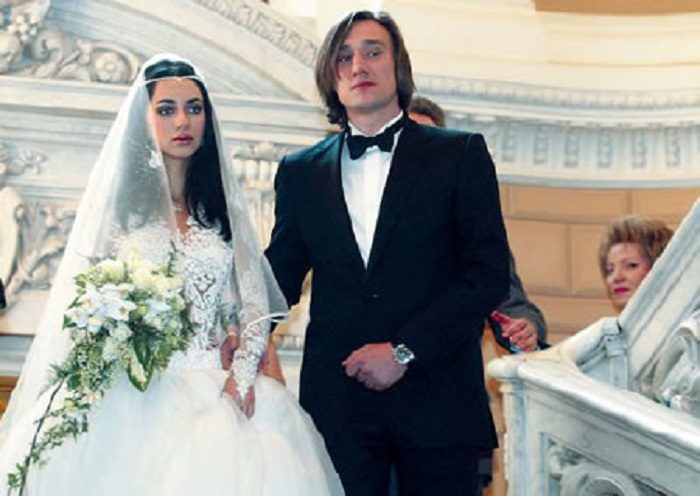 На 36-летней невесте было длинное белое платье с кружевами от итальянского дизайнера, а 29-летний капитан «Зенита» облачился в строгий темно-синий костюм.