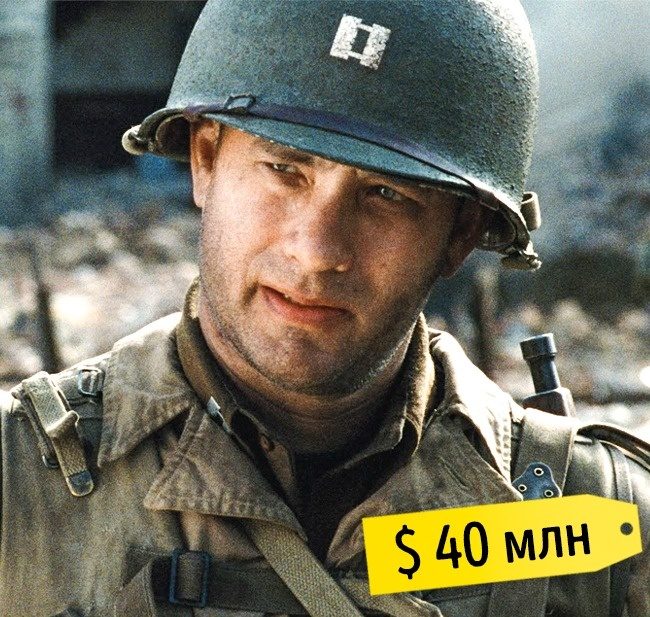 Снимать военные фильмы сложно, играть переполняемых героизмом военных — еще сложнее. Том Хэнкс справился с задачей изумительно, и получил в награду больше половины бюджета. Фильм, кстати, от этого ничего не потерял — лента заработала в 12 раз больше.