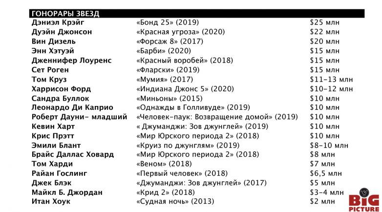 Сколько зарабатывают голливудские звёзды