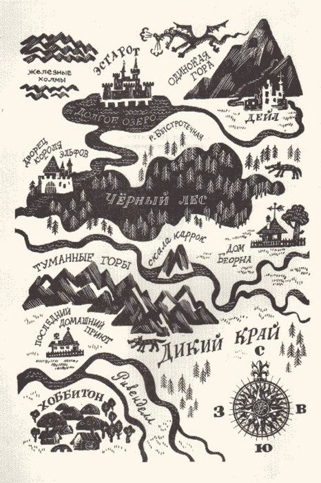 Иллюстрации Михаила Беломлинского «Хоббит, или Туда и обратно», 1976 год, издательство «Детская литертаура»