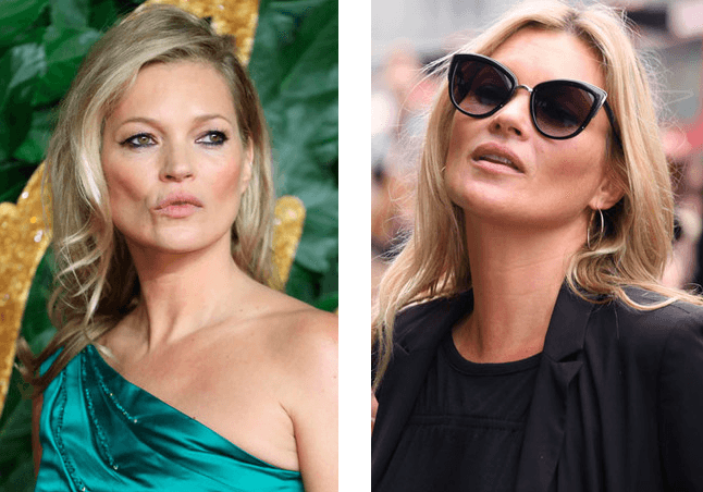 Звезда подиума 1990-2000-х годов решила, что после сорока она может немного расслабиться. Летом папарацци сфотографировали сильно располневшую Кейт. Кроме того, Мосс утратила свежесть лица.