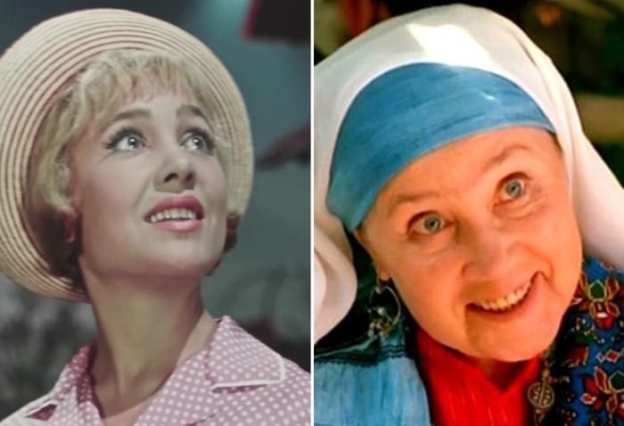 Надежда Румянцева в фильмах *Королева бензоколонки*, 1962, и *Чудная долина*, 2004