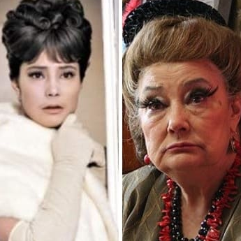 Людмила Гурченко в фильмах *Карнавальная ночь*, 1956, и *Пестрые сумерки*, 2009