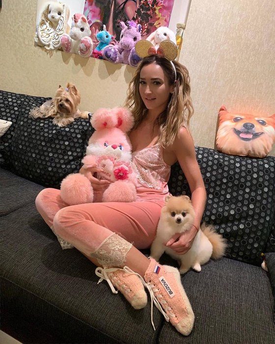 Судя по ее инстаграму, российский дизайнер предпочитает надевать длинные футболки и толстовки своего супруга.