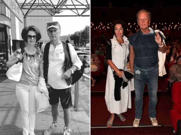 Михаил Задорнов с первой женой Велтой (слева) и со второй женой Алёной.
