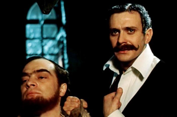 Александр Адабашьян и Никита Михалков в фильме *Приключения Шерлока Холмса и доктора Ватсона. Собака Баскервилей*, 1981