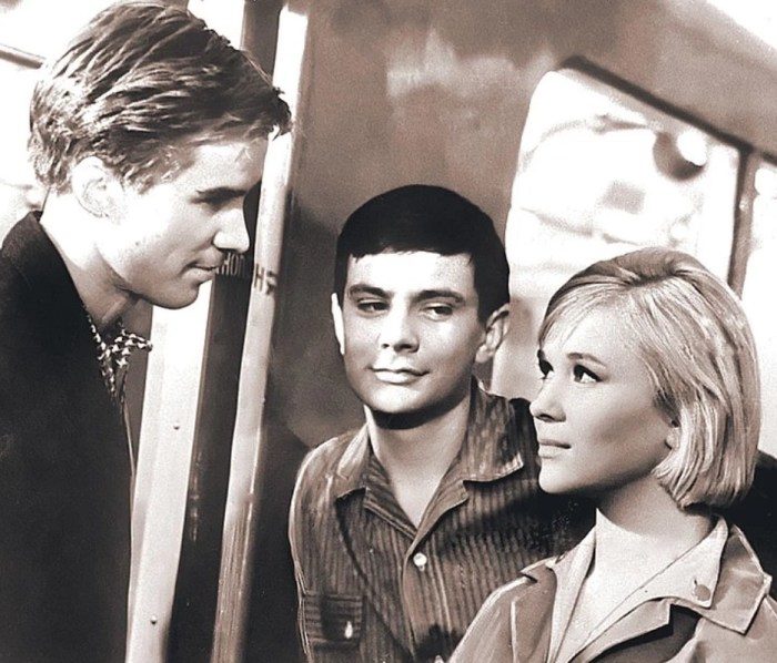 Галина Польских с Алексеем Локтевым и Никитой Михалковым в фильме «Я шагаю по Москве».