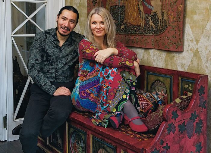 Их собственная квартира, расположенная в старом доме в центре столицы, тоже представляет собой необычное зрелище. В ней сочетаются разные стили и фактуры, которые объединяются общей атмосферой и необычными узорами.