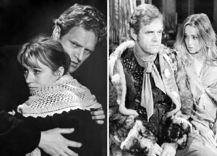 Леонид Марков и Валентина Талызина. / Леонид Марков и Маргарита Терехова в театральной постановке.