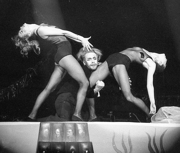ЭпатажЕго выступления перестали ограничиваться только танцами. Борис пробует петь, устраивает шоу с переодеваниями, удивляет зрителей новыми находками. Задолго до появления Леди Гаги Моисеева в костюме с перьями выносили в зал в гробу — никаких запрещенных приемов для него не существовало.