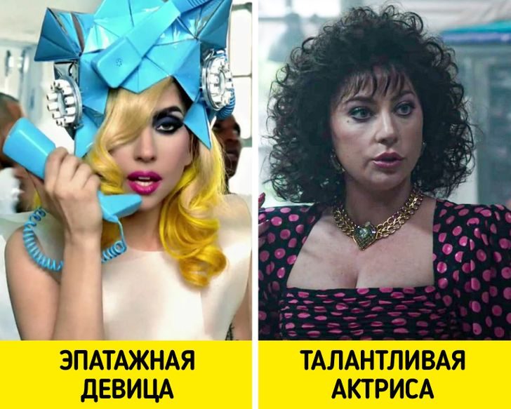 Но на сегодняшний день общественность воспринимает знаменитость не только как вокалистку, но и как драматическую актрису, чему поспособствовало ее участие в фильме «Звезда родилась». За роль в этой ленте Леди Гага даже была номинирована на премию «Оскар». А сейчас мы с нетерпением ждем новый проект с ее участием — «Дом Гуччи», в котором она сыграла супругу главы легендарного модного дома.