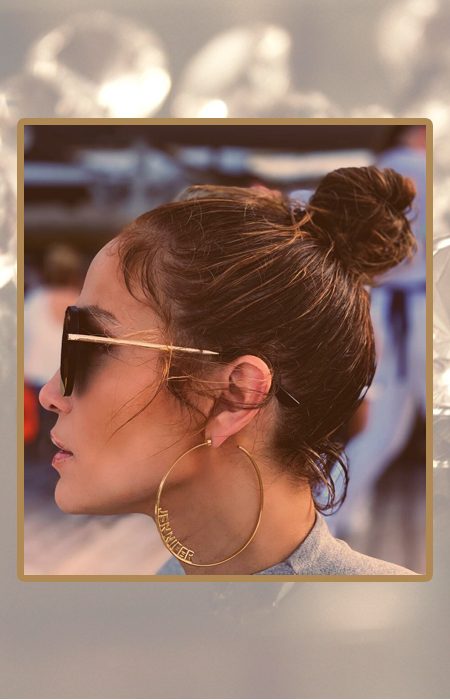 Надо сказать, что этот вид украшений Джей Ло очень идёт. Для выступлений и ярких выходов в свет певица надевает более массивные украшения, а на прогулке с детьми её можно увидеть в более изящных серьгах-конго.