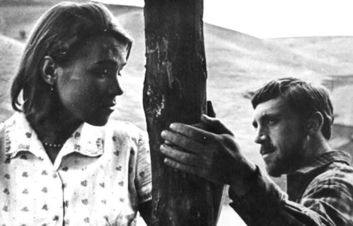 Нина Русланова и Владимир Высоцкий в фильме *Короткие встречи*, 1967