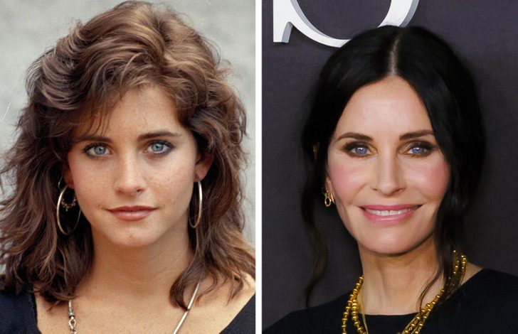 Кортни Кокс в 1987 и 2022 годах