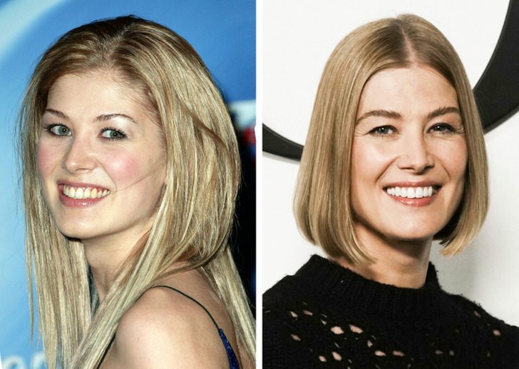 Розамунд Пайк в 2002 и 2021 годах