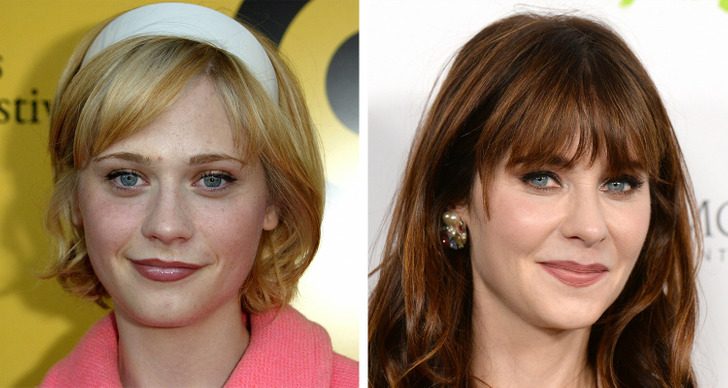 Зои Дешанель в 2002 и 2021 годах