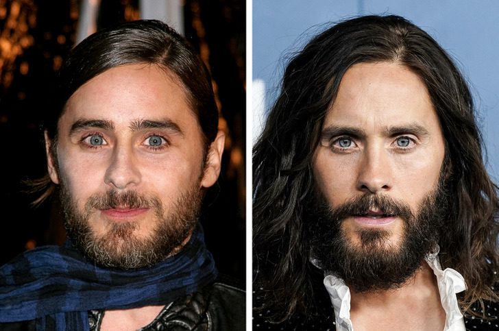 Известный актер и музыкант отлично выглядит в свои 50 лет. А его стиль кардинально менялся на протяжении всей его карьеры. Сейчас рок-звезда отрастил волосы, усы и бороду. И, судя по всему, Лето не стесняется пользоваться услугами барберов и стилистов-колористов. Согласитесь, образ жгучего брюнета ему очень идет.