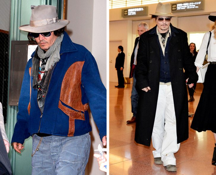 Джонни Депп гуляет по городу (фото 1), идет по аэропорту Токио (фото 2)