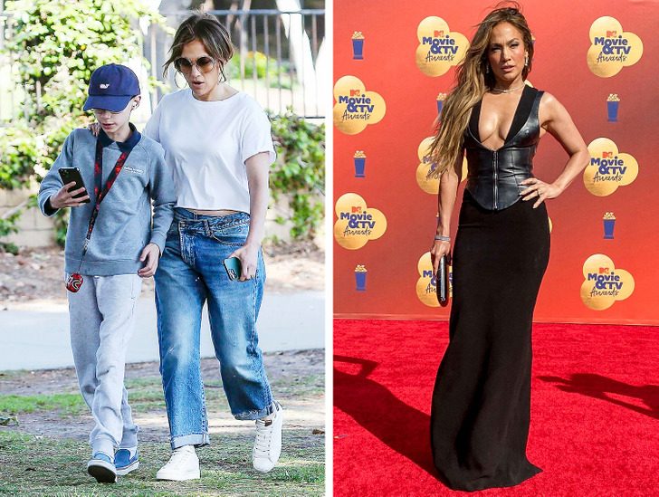 Стоит только посмотреть на знаменитых женщин, когда они проводят время со своими детьми. Но чего у них не отнять, так это умения словно по мановению волшебной палочки превращаться в богинь красных дорожек.