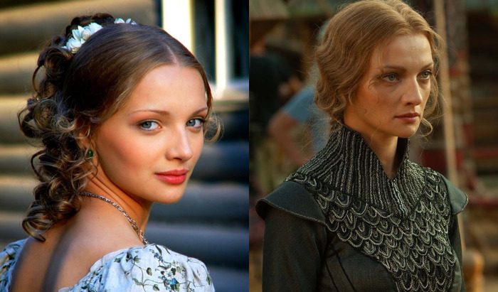 Съемки в сериале «Сатисфакция» (снимок слева) отвлекли актрису от отношений, у которых не было будущего, а «Последний богатырь» (снимок справа) принес еще больше поклонников актрисе