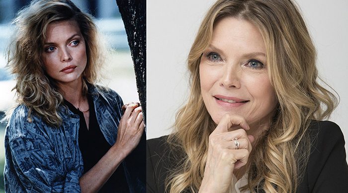 Мишель Пфайффер в далёких 1990-х и в 2022 году.