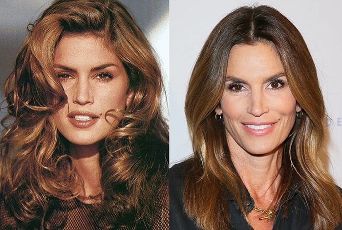 Синди Кроуфорд в далёких 1990-х и в 2022 году.