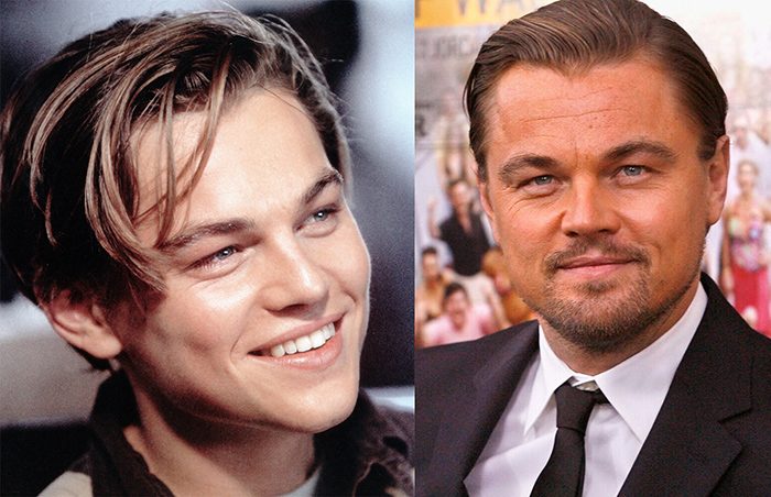 Леонардо ДиКаприо в далёких 1990-х и в 2022 году.
