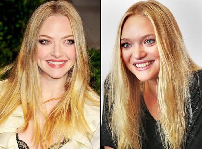 Американская актриса Аманда Сейфрид также удивляет своих поклонников схожестью с успешной австралийской моделью Джеммой Уорд. Обе знаменитости роились на разных континентах: Аманда по происхождению американка, а родиной Джеммы является Австралия.