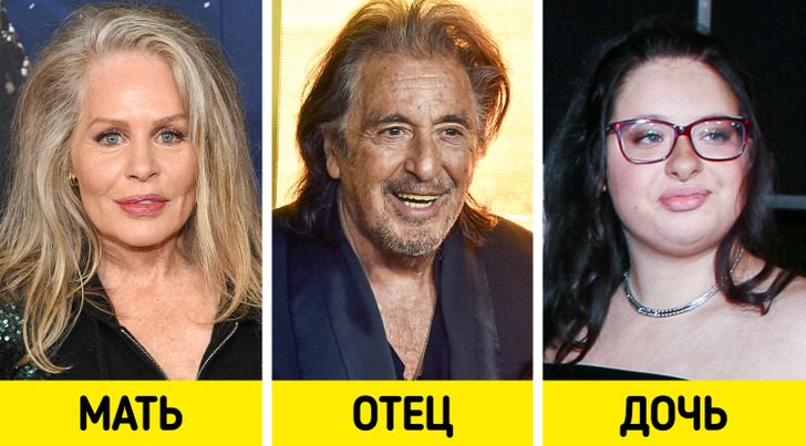 У Беверли и ее партнера Аль Пачино родился не один первенец, а сразу двое: в 49 лет актриса забеременела близнецами, прибегнув к помощи ЭКО. Ее сын и дочь (на групповом фото они слева от отца) родились в 2001 году — сейчас близнецам уже за 20.