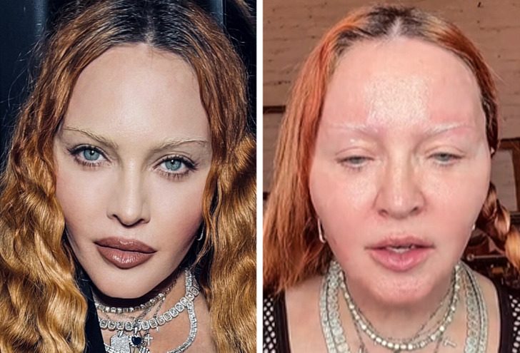 Все свежи без макияжа. Кёртис — вообще никакой разницы — всегда очаровашка. Но Мадонна, мамма мия, жесть, как страшна!