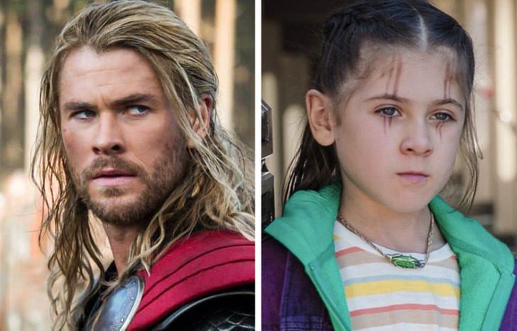 7. Крис Хемсворт с дочерью Индией Роуз Хемсворт в фильме «Тор 4»