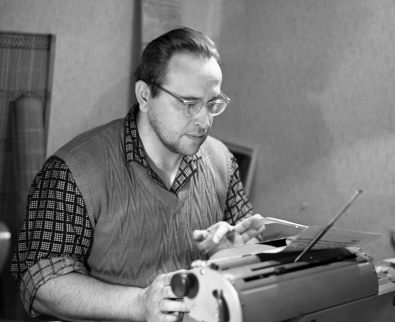 30. Советский тяжелоатлет Юрий Власов за работой над книгой, 1968 год