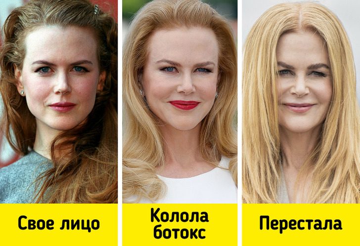 Лауреатка премии «Оскар» призналась, что в попытках остановить старение перепробовала кучу процедур. Вот только от большинства не было никакого толку. А после уколов ботокса актрисе вовсе перестало нравиться то, как выглядит ее лицо. Николь сказала: «Я отказалась от ботокса и наконец-то снова могу шевелить лбом!»